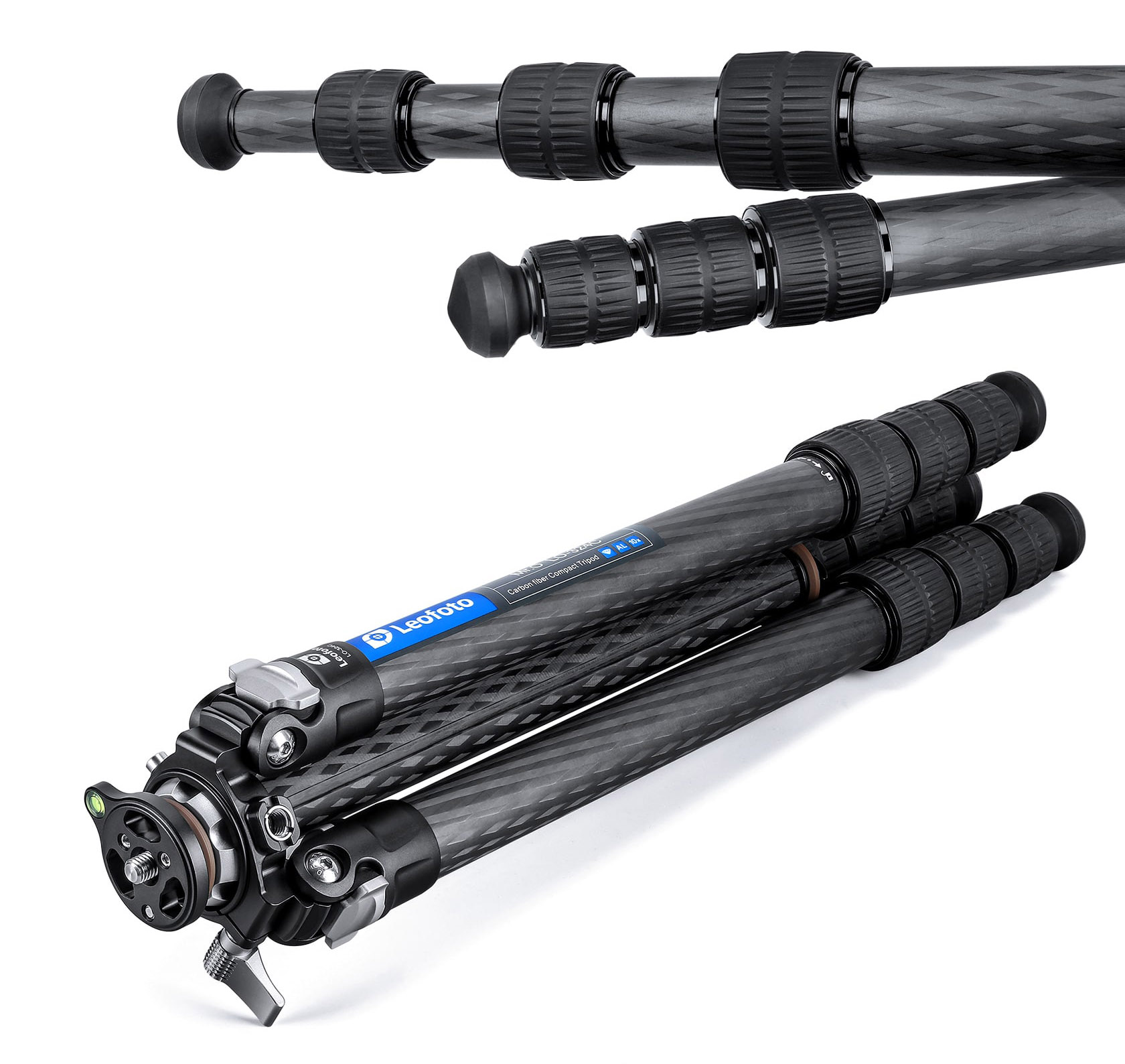 Eine Besonderheit eines Carbon-Stativs der Mr.O-Serie ist die Plattform mit eingebauter Kugel. Die Mittelsäule wird durch die Gelenkkugel geschoben. Dank der Kugel können Sie nicht nur die gewünschte Höhe, sondern auch den Winkel der Mittelsäule einstellen. Nach der Einstellung können Sie den praktischen Hebel betätigen, um sicherzustellen, dass alles in Position bleibt. Die Mittelsäule kann auch umgedreht werden, was für das Arbeiten in Bodennähe von Vorteil ist. Die 10-fach geflochtene Carbonfaser macht das LO-324C-Stativ stabil und trotzdem leicht (nur 1,65 kg). Trotz seines geringen Gewichts hat es eine Tragfähigkeit von 15 Kilogramm. Dadurch eignet sich das Stativ auch zum Tragen von Kameras mit langen Objektiven.