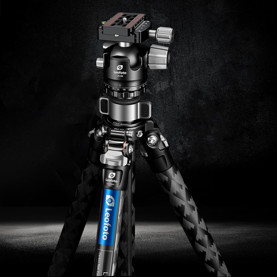 Das Q-Stativ, wie auch der Kugelkopf meistern ganze 12 kg Traglast. Mit seinem Eigengewicht von nur 1.53kg ist das Set ein kompakter, funktionaler und stabiler Begleiter für unterwegs. Die Carbon-Mittelsäule ist ebenso im Komplett-Set dabei wie der Kugelkopf. Auch ein Multi-Tool, ein Karabiner und ein Satz Edelstahl-Spikes sind im Lieferumfang enthalten – alles zusammen wird in einer robusten Transporttasche geliefert. Das LQ-284C verfügt seitlich über zwei Norm-Gewindeanschlüsse – einen mit 1/4 Zoll Gewinde und eine mit 3/4 Zoll Gewinde. Somit ist der Dreibeiner für alles gewappnet und kann mit Zubehör wie Smartphone, Blitz, Reflektor etc. erweitert werden. Die neue, diamantförmige Carbon-Struktur sorgt für zusätzliche Stabilität bei reduziertem Eigengewicht. Das von Leofoto entwickelte und erweiterbare LQ-Wechselsystem ermöglicht einen schnellen Wechsel zwischen Mittelsäule, Nivellierkopf sowie Wechselbasis. Die beiden letzteren Erweiterungen sind zusätzlich in unserem Shop erhältlich.