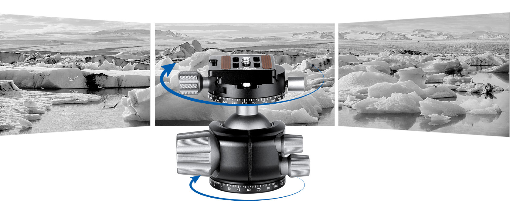 Der LH-36R Kugelkopf verfügt zusätzlich über eine integrierte 360° Panorama-Funktion. Auch ein Multi-Tool, ein Karabiner und ein Satz Spikes aus Edelstahl sind im Lieferumfang enthalten – alles zusammen wird in einer robusten Transporttasche geliefert. Das LS-284C Pro verfügt zudem seitlich und unten an der Spinne über einen 1/4 Zoll Norm-Gewindeanschluss. Damit ist der Dreibeiner für alles gewappnet und kann mit Zubehör wie Smartphone, Blitz, Reflektor etc. erweitert werden.