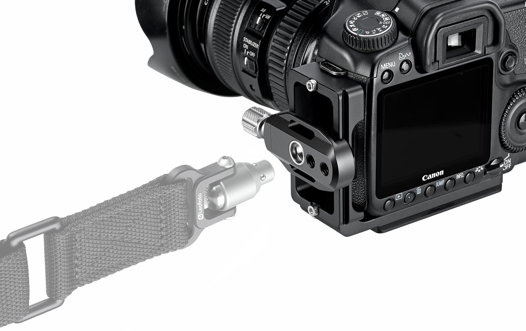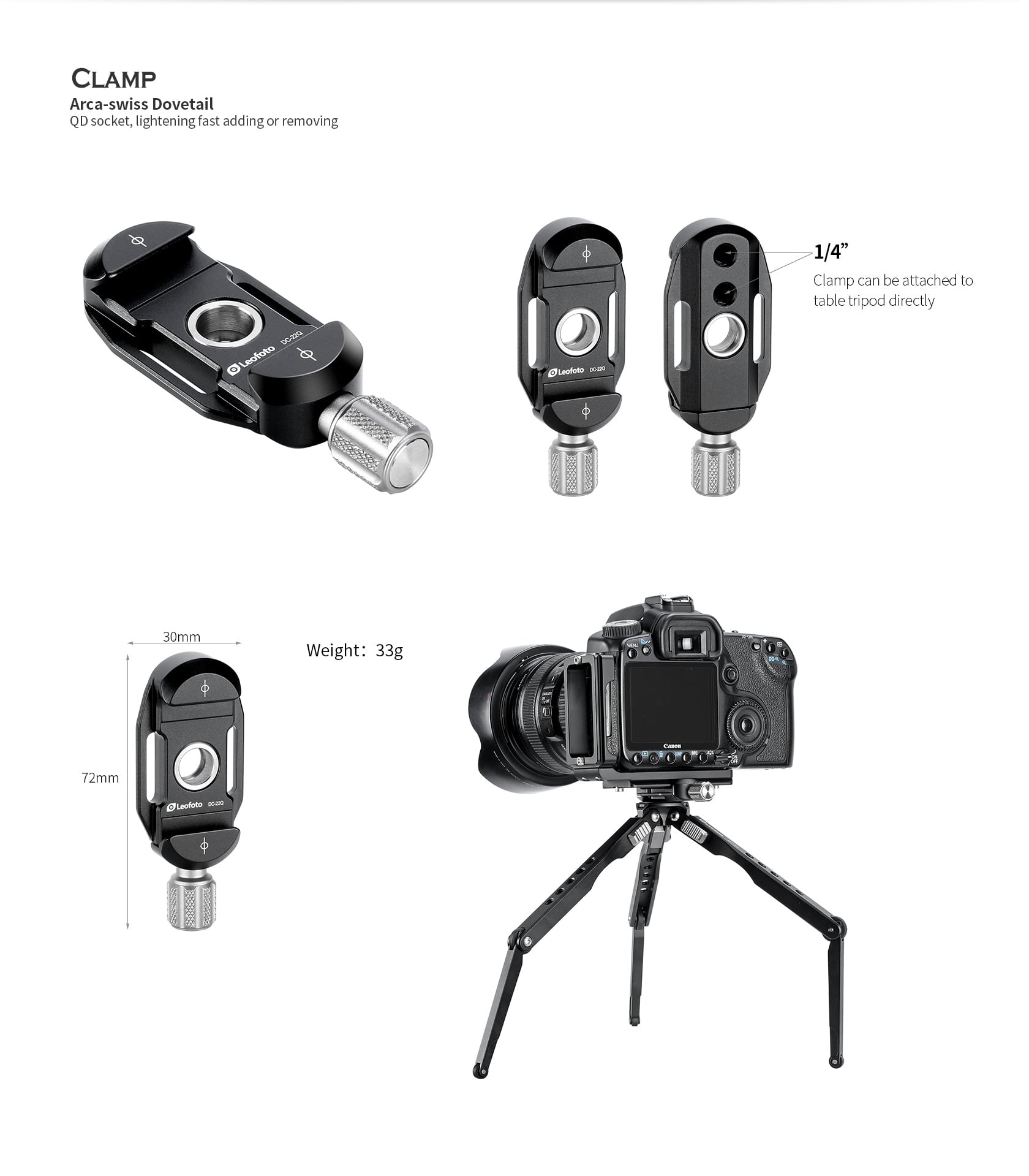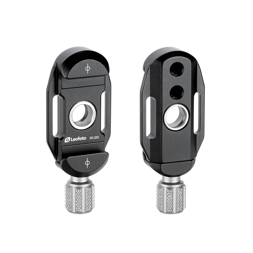 Die DC-22Q Klemme mit QD-Buchse ist speziell für die Verwendung mit Leofoto-Gurten mit QD-Anschluss gemacht. Die Arca-Swiss Klemme wird mittels dem Druckknopf-System sicher und schnell am Gurt befestigt. Dies ermöglicht einen sehr schnelles Lösen und Fixieren. Über die universelle Arca-Swiss Klemme, wird die DC-22Q an üblichen Schnellwechselplatten oder mit L-Schienen befestigt. Weiter verfügt die Klemme über zwei 1/4 Zoll Gewinde sowie Schlaufen für einen vielfältigen Einsatz beispielsweise direkt auf einem Stativ.