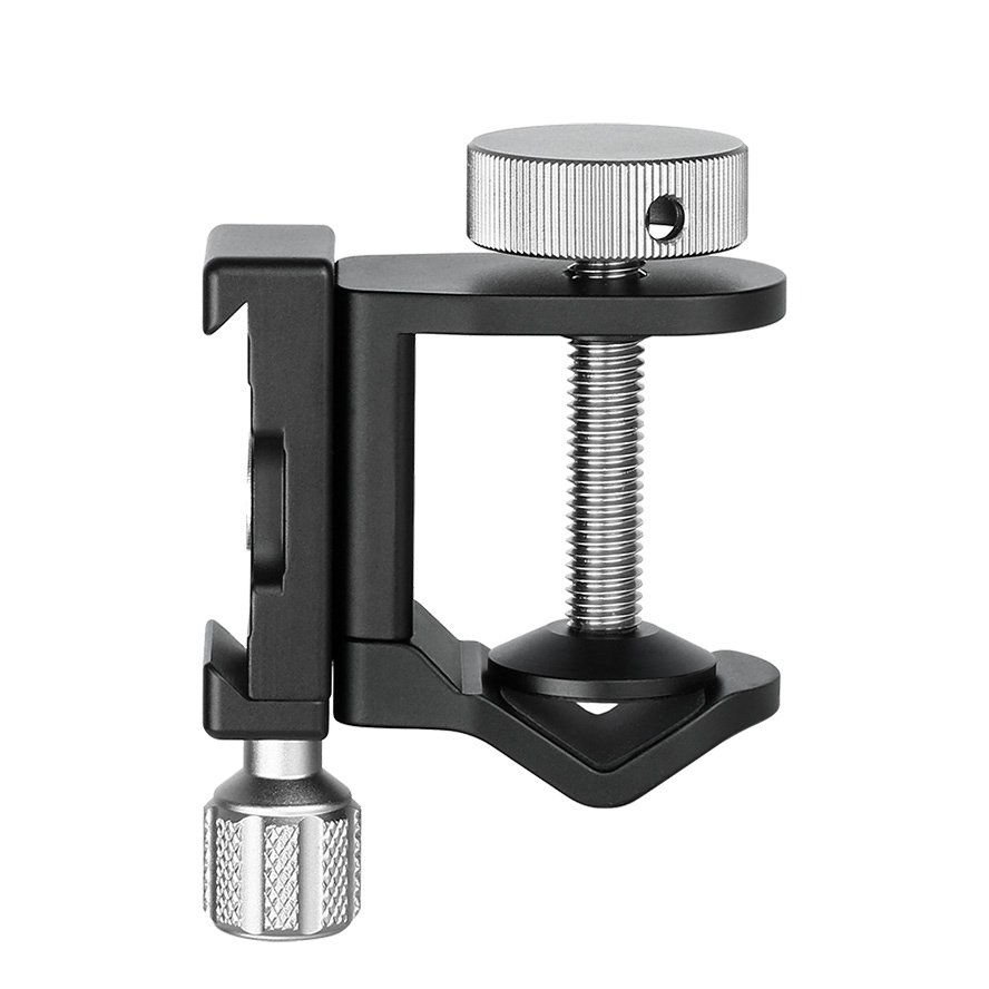 Die kompakte Klemme (Schraubzwinge) kann an einer Arca-Swiss Schiene, L-Platte oder per 1/4 Zoll Gewinde über einen Haltearm (zBsp. AM-2) am Stativ befestigt werden. Die Klemme ist wiegt lediglich 103g und hält Schirme, Blenden, Reflektoren und Weiteres Zubehör.