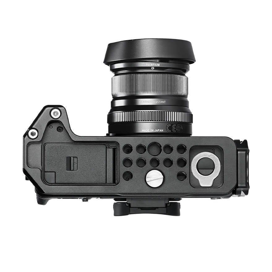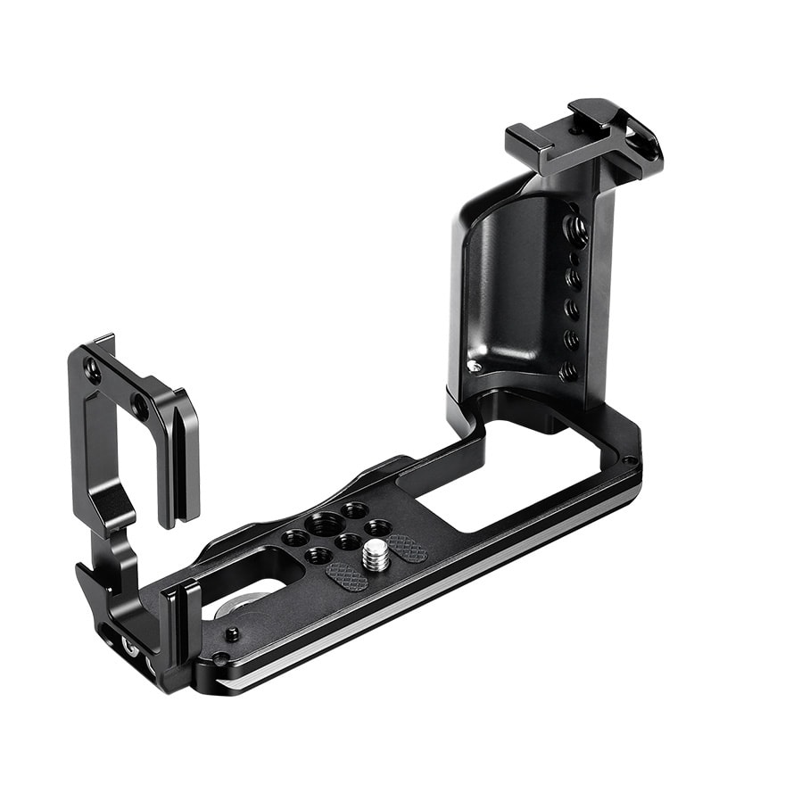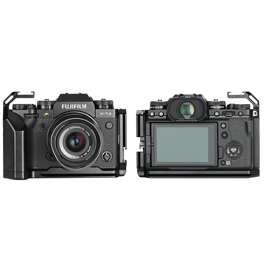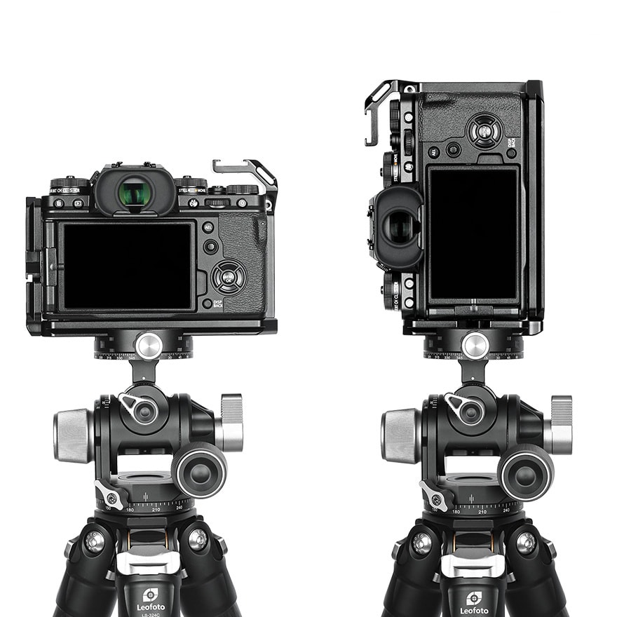 Die L-Bracket Rig von Leofoto wurde individuell für die Fuji X-T4 massgeschneidert und aus massivem Aluminium gefertigt. Die Platten sind vollständig kompatibel mit allen Arca-Swiss Schnellwechselsystemen und haben eine perfekte Passform, die ein Verdrehen zwischen der Kamera und der L-Winkel Platte verhindert. Die LPF-XT4 verfügt über zwei Arca-Swiss Montageflächen: eine an der Unterseite Ihrer Kamera und eine an der linken Seite. Mit dieser zusätzlichen Befestigungsmöglichkeit können Sie schnell zwischen Hoch- und Querformat wechseln, ohne dass Sie Ihre Aufnahme neu ausrichten müssen. Die seitliche Schiene kann bei Bedarf abmontiert werden.