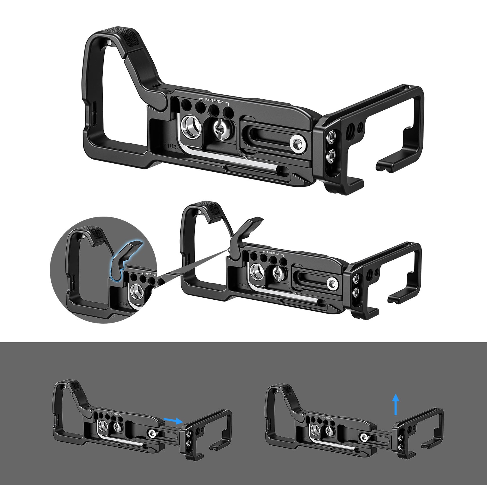 Die L-Bracket Kameraplatte wird individuell für folgende Modelle der Sony Alpha massgeschneidert und aus massivem Aluminium gefertigt: A7R-VI (Mark 4), A7R-V (Mark 5), A7-IV (Mark 4), A1, A9-II (Mark 2) sowie A7S-III (Mark 3). Die Platten sind vollständig kompatibel mit allen Arca-Swiss Schnellwechselsystemen und haben eine perfekte Passform, die ein Verdrehen zwischen der Kamera und der L-Winkel Platte verhindert. Die LPS-A7 verfügt über zwei Arca-Swiss Montageflächen: eine an der Unterseite Ihrer Kamera und eine an der linken Seite. Mit dieser zusätzlichen Befestigungsmöglichkeit können Sie schnell zwischen Hoch- und Querformat wechseln, ohne dass Sie Ihre Aufnahme neu ausrichten müssen. Die seitliche Schiene kann bei Bedarf abmontiert werden. Die L-Winkel verfügt über eine normierte 1/4 Zoll Gewindeschraube, für die Montage unten an der Kamera.
