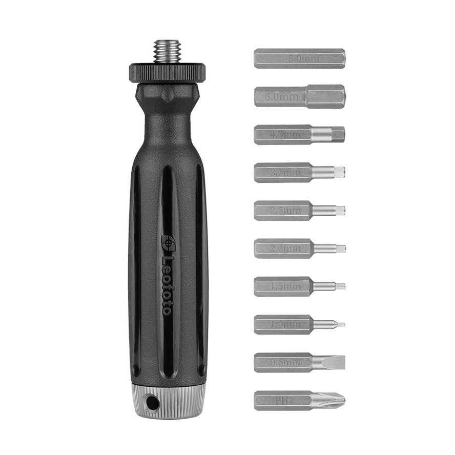 Mit diesem vielseitigen und umfangreichen Werkzeugsatz lassen sich alle Arten von Schrauben festziehen oder lösen. Im Lieferumfang ist eine ganze Reihe von Klinge-Bits, Kreuz- und Längsschlitz, Innensechskant enthalten. Doch das LMT-10 Multitool kann noch mehr. Es eignet sich nämlich auch wunderbar als Mittelsäule für Leofoto Mini-Stative. Deren Arbeitshöhe wird damit um 125 mm erhöht. Am besten hat man es auf Fototour immer dabei!