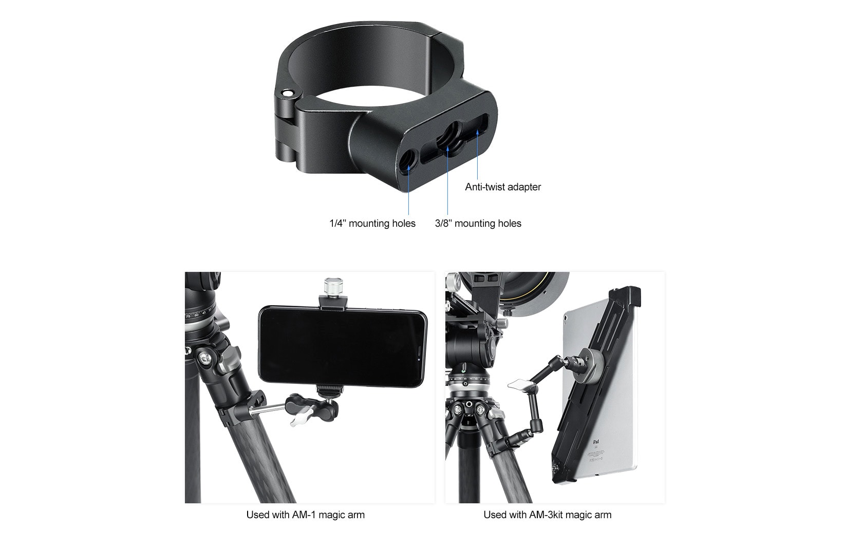 Die TDC-32 Schelle lässt sich an jedem Rohr mit 32mm Durchmesser befestigen. Der dazu mitgelieferte Schraubadapter CF-9 ermöglicht zudem die Montage jeglichen Zubehörs über das 1/4 Zoll oder 3/8 Zoll Normgewinde.