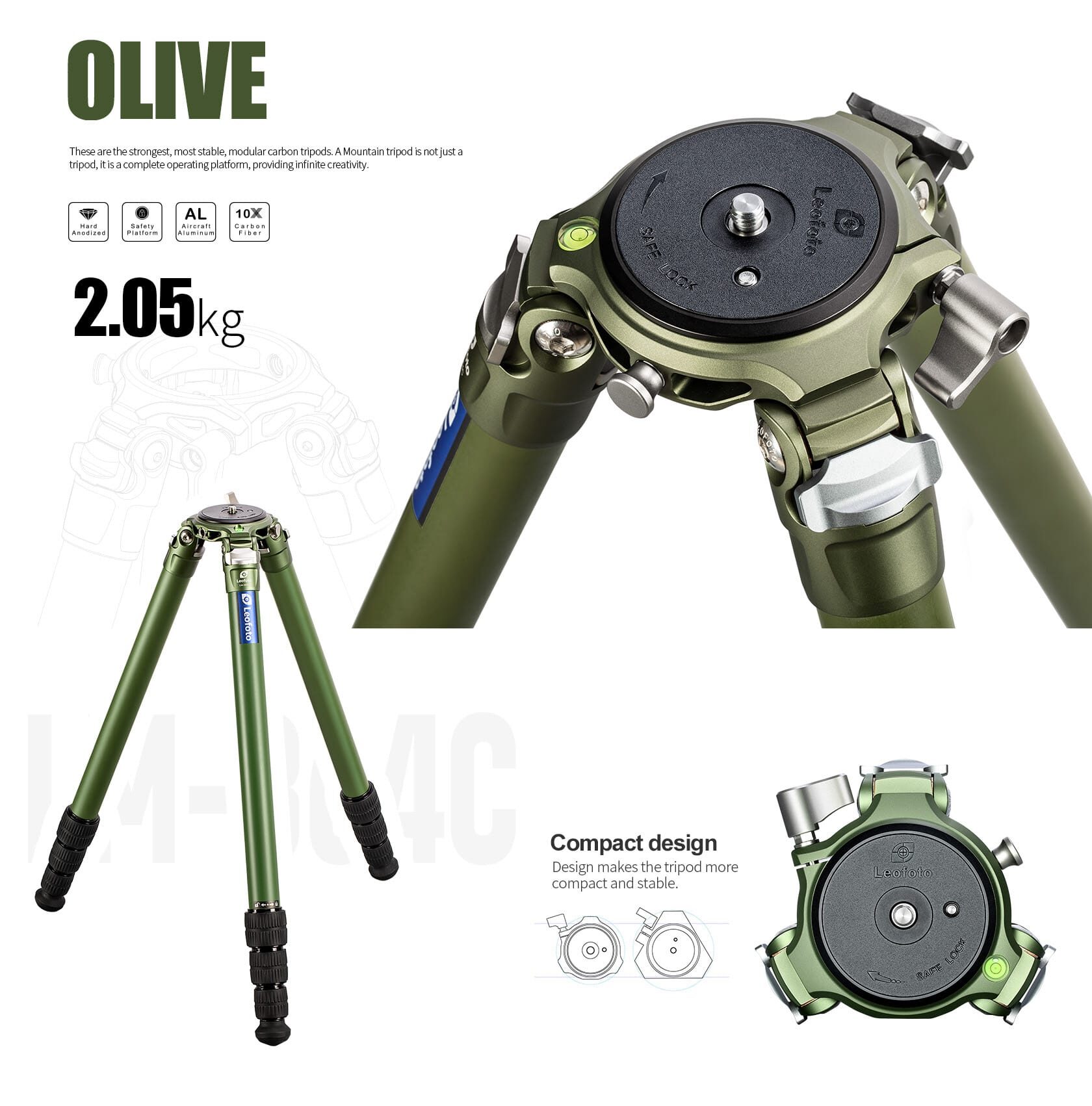 Das LM-364CL ist auf professionelle Anwendungen für unterwegs oder im Studio ausgelegt – optimal auch für schwere Foto- wie auch Videokameras. Das Summit Stativ ist mit einer Wasserwaage ausgestattet und besitzt eine abnehmbare Basisplatte, sowie eine Halbschale mit 75mm Durchmesser. Mittels dem Schnellwechsel-System kann blitzschnell zwischen mehreren auf Basisplatten montierte Stativköpfen gewechselt werden. Die Rohre bestehen aus 10-Lagen Toray Carbon und die Metallteile aus harteloziertem Aircraft-Aluminium. Die olive-grüne Beschichtung ist besonders kratzfest und schütz das Stativ vor äusseren Einflüssen.