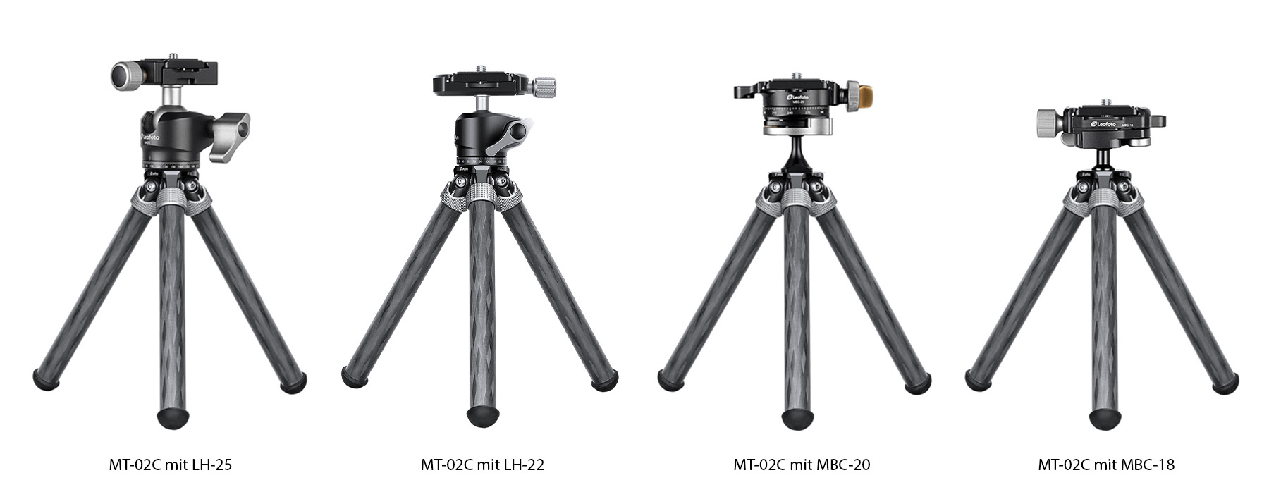 Folgende Stativköpfe empfehlen wir zum MT-02 (siehe Vergleich-Bild unten):
